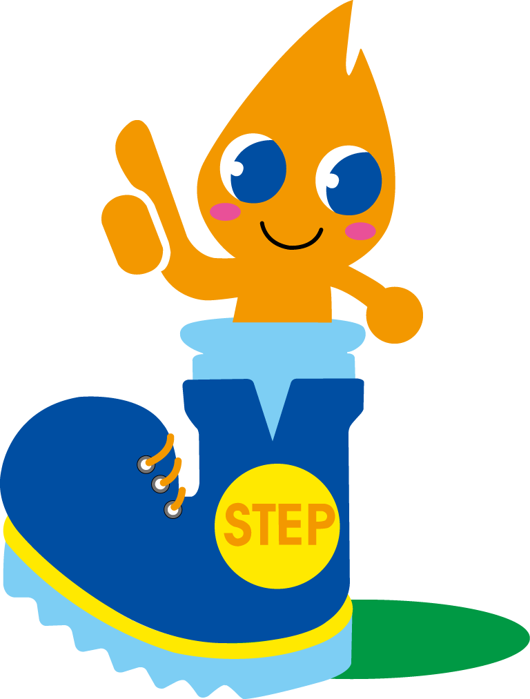 燃えたぎる闘志、エネルギーを親しみやすいキャラクター・炎に変化させ、ステップアップする靴(Jの形の靴)から飛び出して、各種の競技(サッカーやウエイトリフティング等)を行うキャラクターに仕上げてあります。