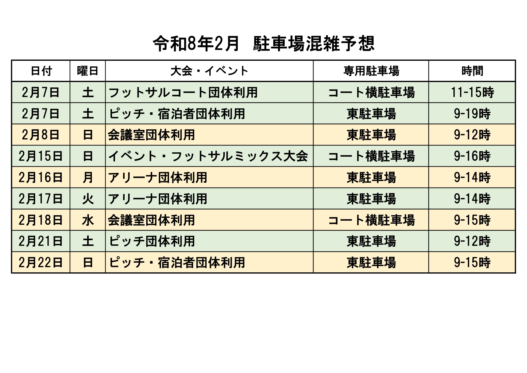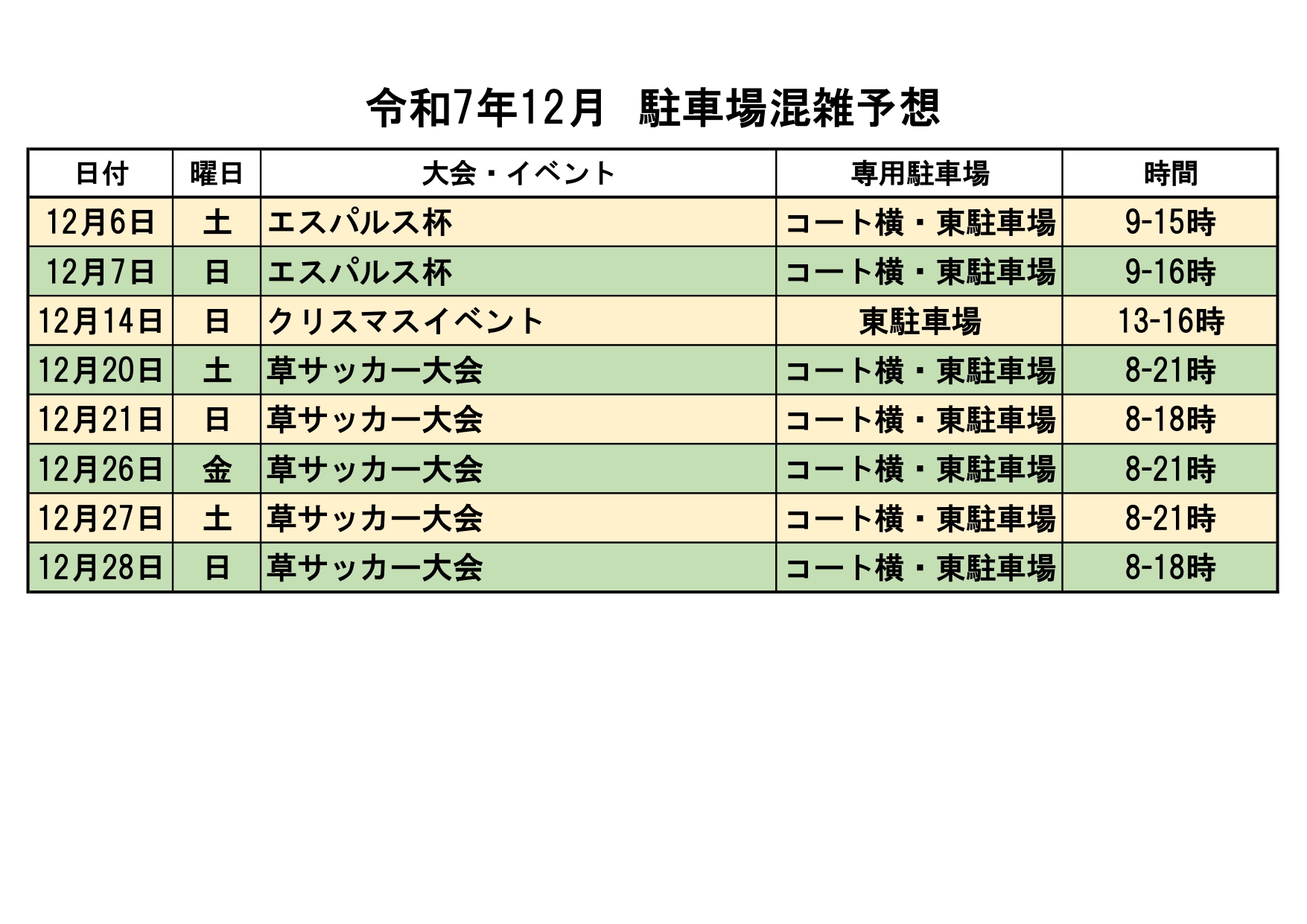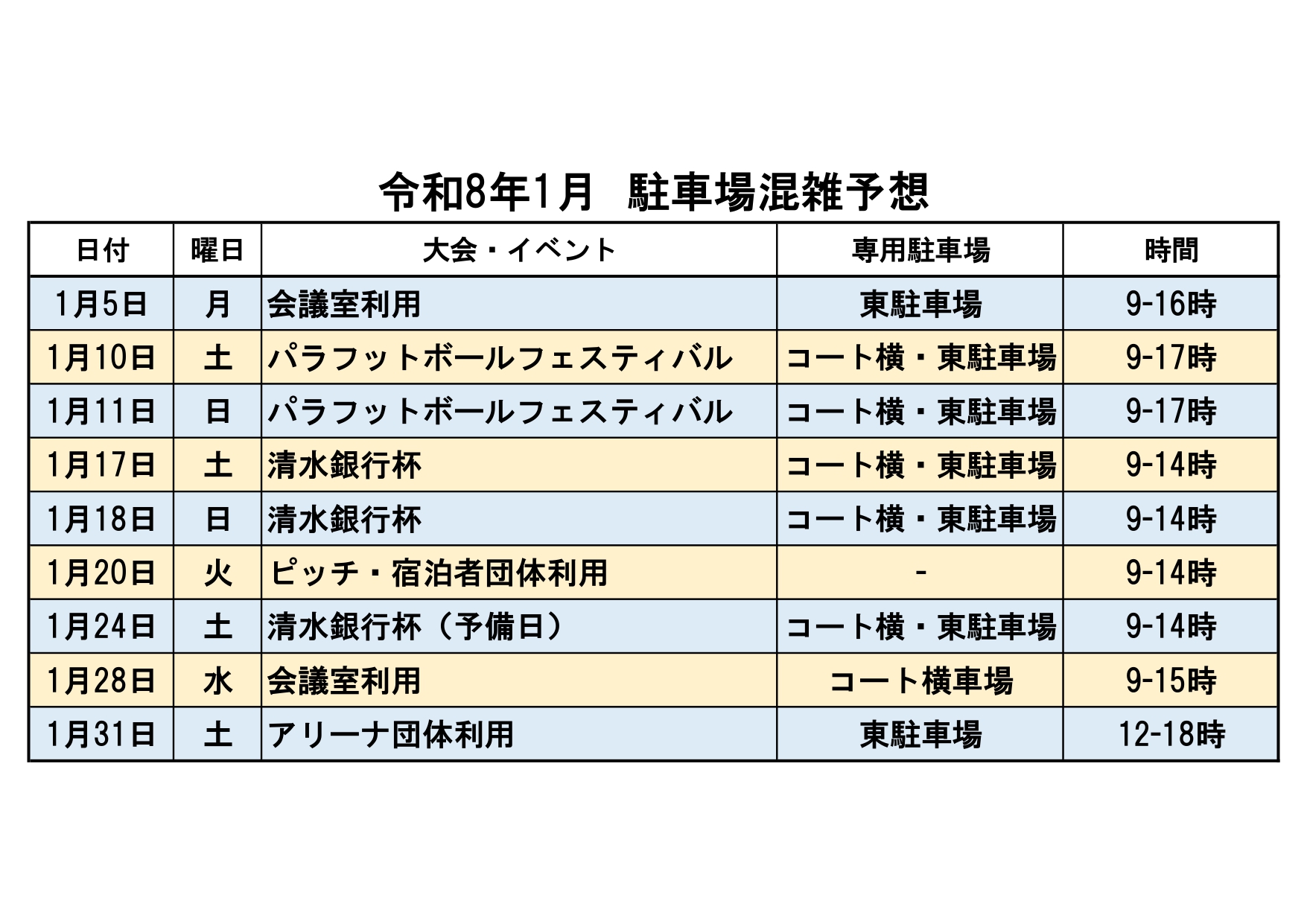 大会及びイベント開催に伴い、駐車場の混雑が予想されます。できるだけ乗り合わせでのご来場をよろしくお願いします。